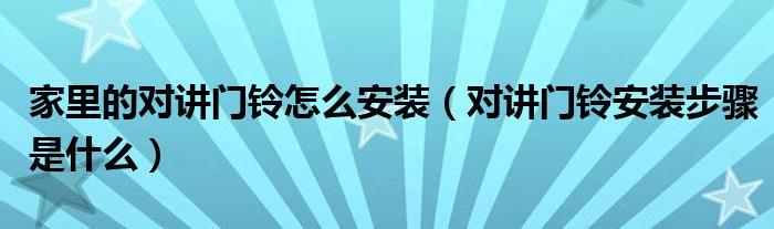 导读 大家好,精选小编来为大家解答以上的问题。家里的对讲门铃怎么安装,对讲门铃安装步骤是什么很多人还不知道,现在让我们一起来看看吧!1、
