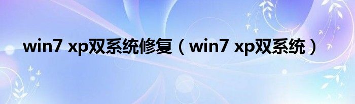 大家好,麟非来为大家解答以上问题,win7 xp双系统修复,win7 xp双系统很多人还不知道,现在让我们一起来看看吧!