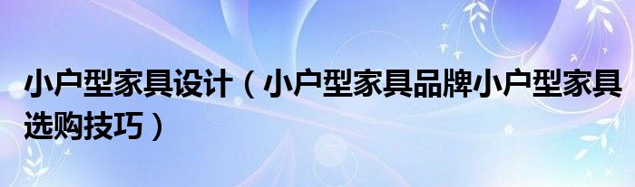 导读 大家好,精选小编来为大家解答以上的问题。小户型家具设计,小户型家具品牌小户型家具选购技巧很多人还不知道,现在让我们一起来看看吧!1