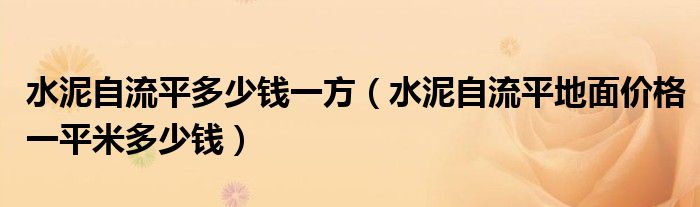 导读 大家好,小编慧慧来为大家解答以上的问题。水泥自流平多少钱一方,水泥自流平地面价格一平米多少钱很多人还不知道,现在让我们一起来看看吧