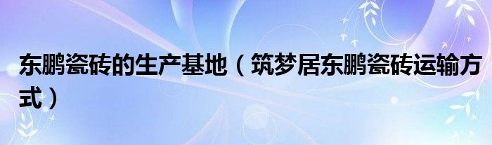 大家好,精选小编来为大家解答以上的问题。东鹏瓷砖的生产基地,筑梦居东鹏瓷砖运输方式很多人还不知道,现在让我们一起来看看吧!