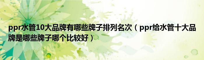 导读 大家好,精选小编来为大家解答以上的问题。ppr水管10大品牌有哪些牌子排列名次,ppr给水管十大品牌是哪些牌子哪个比较好很多人还不知道,现