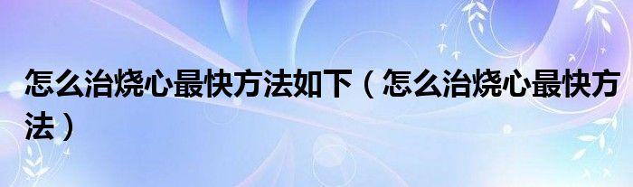 怎么治烧心最快方法如下(怎么治烧心最快方法)