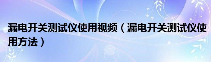 漏电开关测试仪使用视频(漏电开关测试仪使用方法)