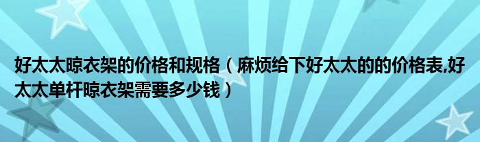好太太晾衣架的价格和规格(麻烦给下好太太的的价格表,好太太单杆晾衣架需要多少钱)