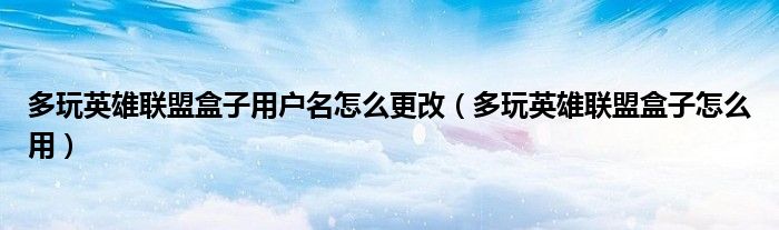 多玩英雄联盟盒子用户名怎么更改(多玩英雄联盟盒子怎么用)