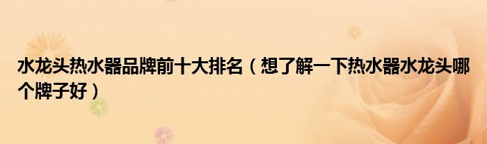 导读 大家好,精选小编来为大家解答以上的问题。水龙头热水器品牌前十大排名,想了解一下热水器水龙头哪个牌子好很多人还不知道,现在让我们一起