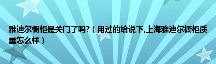 雅迪尔橱柜是关门了吗?(用过的给说下,上海雅迪尔橱柜质量怎么样)