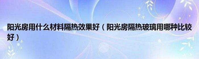 导读 大家好,精选小编来为大家解答以上的问题。阳光房用什么材料隔热效果好,阳光房隔热玻璃用哪种比较好很多人还不知道,现在让我们一起来看看