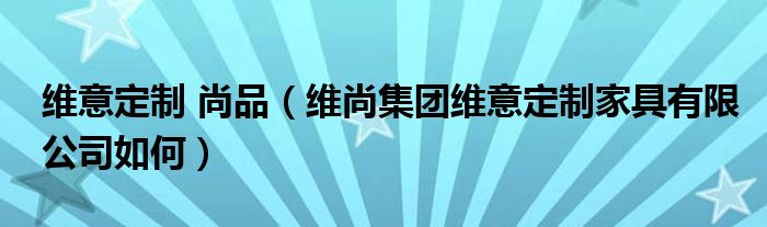 维意定制 尚品(维尚集团维意定制家具有限公司如何)