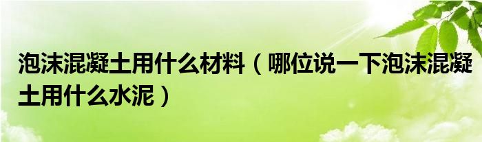 泡沫混凝土用什么材料(哪位说一下泡沫混凝土用什么水泥)