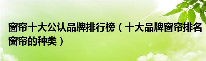 导读 大家好,精选小编来为大家解答以上的问题。窗帘十大公认品牌排行榜,十大品牌窗帘排名窗帘的种类很多人还不知道,现在让我们一起来看看吧!