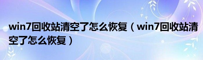 win7回收站清空了怎么恢复(win7回收站清空了怎么恢复)