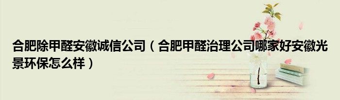 合肥除甲醛安徽诚信公司(合肥甲醛治理公司哪家好安徽光景环保怎么样)