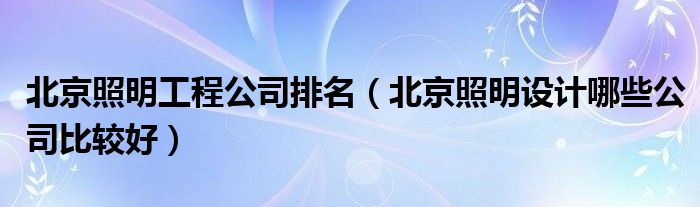 导读 大家好,精选小编来为大家解答以上的问题。北京照明工程公司排名,北京照明设计哪些公司比较好很多人还不知道,现在让我们一起来看看吧!1