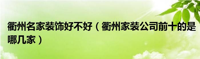 衢州名家装饰好不好(衢州家装公司前十的是哪几家)