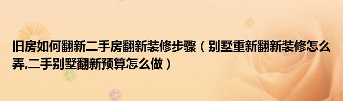 导读 大家好,精选小编来为大家解答以上的问题。旧房如何翻新二手房翻新装修步骤,别墅重新翻新装修怎么弄,二手别墅翻新预算怎么做很多人还不知