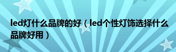 导读 大家好,精选小编来为大家解答以上的问题。led灯什么品牌的好,led个性灯饰选择什么品牌好用很多人还不知道,现在让我们一起来看看吧!1、