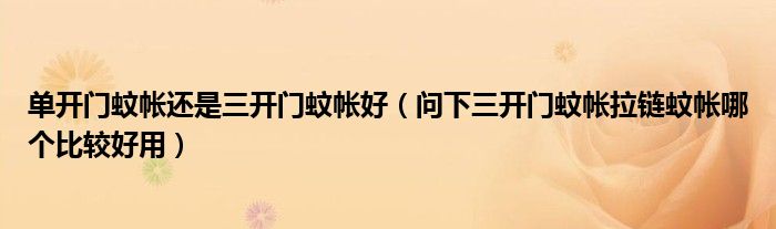 导读 大家好,精选小编来为大家解答以上的问题。单开门蚊帐还是三开门蚊帐好,问下三开门蚊帐拉链蚊帐哪个比较好用很多人还不知道,现在让我们一
