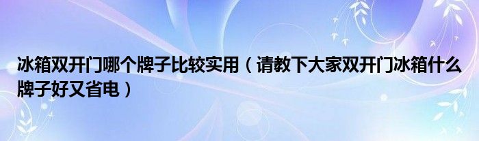 导读 大家好,精选小编来为大家解答以上的问题。冰箱双开门哪个牌子比较实用,请教下大家双开门冰箱什么牌子好又省电很多人还不知道,现在让我们