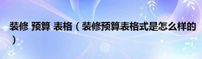 大家好,精选小编来为大家解答以上的问题。装修 预算 表格,装修预算表格式是怎么样的很多人还不知道,现在让我们一起来看看吧!