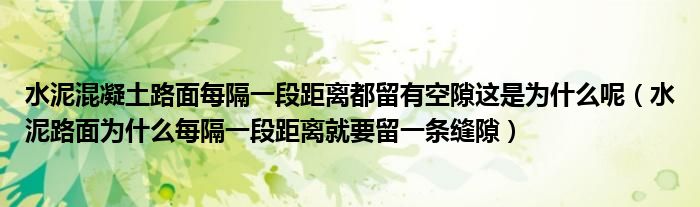 水泥混凝土路面每隔一段距离都留有空隙这是为什么呢(水泥路面为什么每隔一段距离就要留一条缝隙)
