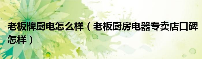 老板牌厨电怎么样(老板厨房电器专卖店口碑怎样)