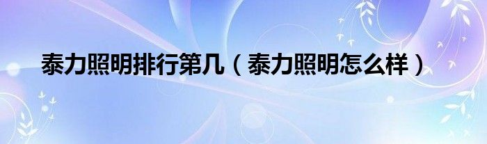 大家好,精选小编来为大家解答以上的问题。泰力照明排行第几,泰力照明怎么样很多人还不知道,现在让我们一起来看看吧!