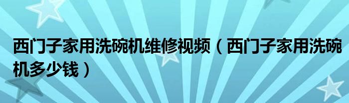 西门子家用洗碗机维修视频(西门子家用洗碗机多少钱)