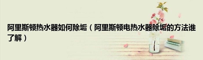 阿里斯顿热水器如何除垢(阿里斯顿电热水器除垢的方法谁了解)