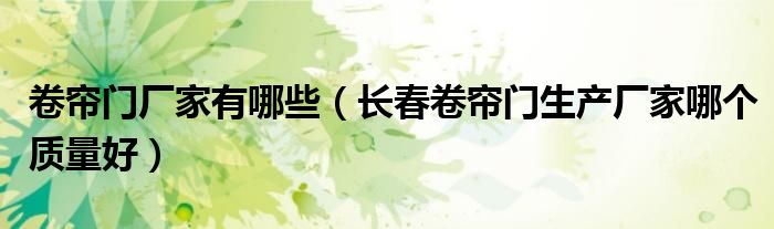 导读 大家好,精选小编来为大家解答以上的问题。卷帘门厂家有哪些,长春卷帘门生产厂家哪个质量好很多人还不知道,现在让我们一起来看看吧!1、