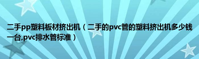 导读 大家好,精选小编来为大家解答以上的问题。二手pp塑料板材挤出机,二手的pvc管的塑料挤出机多少钱一台,pvc排水管标准很多人还不知道,现在