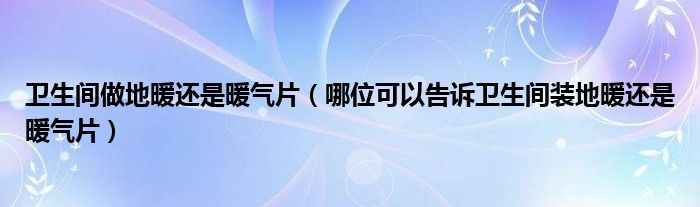 卫生间做地暖还是暖气片(哪位可以告诉卫生间装地暖还是暖气片)
