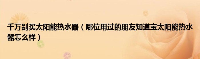 大家好,精选小编来为大家解答以上的问题。千万别买太阳能热水器,哪位用过的朋友知道宝太阳能热水器怎么样很多人还不知道,现在让我们一起来看看吧!