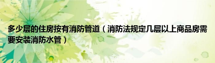 多少层的住房按有消防管道(消防法规定几层以上商品房需要安装消防水管)