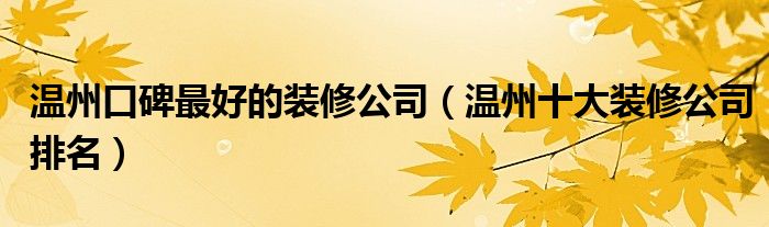温州口碑最好的装修公司(温州十大装修公司排名)