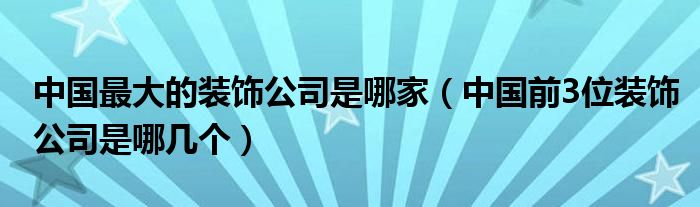 导读 大家好,小编慧慧来为大家解答以上的问题。中国最大的装饰公司是哪家,中国前3位装饰公司是哪几个很多人还不知道,现在让我们一起来看看吧