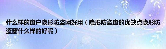 导读 大家好,精选小编来为大家解答以上的问题。什么样的窗户隐形防盗网好用,隐形防盗窗的优缺点隐形防盗窗什么样的好呢很多人还不知道,现在让