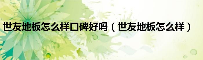 世友地板怎么样口碑好吗(世友地板怎么样)