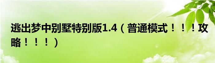 逃出梦中别墅特别版1.4(普通模式!!!攻略!!!)