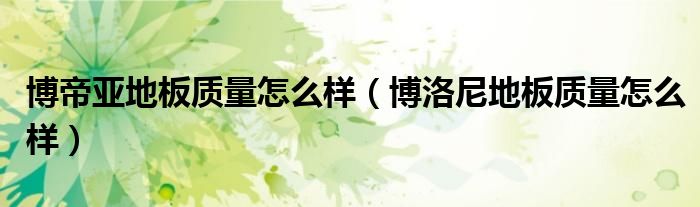 博帝亚地板质量怎么样(博洛尼地板质量怎么样)