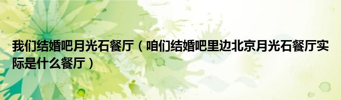 导读 大家好,小编慧慧来为大家解答以上的问题。我们结婚吧月光石餐厅,咱们结婚吧里边北京月光石餐厅实际是什么餐厅很多人还不知道,现在让我们
