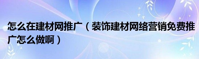 怎么在建材网推广(装饰建材网络营销免费推广怎么做啊)