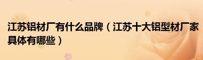 导读 大家好,小编慧慧来为大家解答以上的问题。江苏铝材厂有什么品牌,江苏十大铝型材厂家具体有哪些很多人还不知道,现在让我们一起来看看吧!
