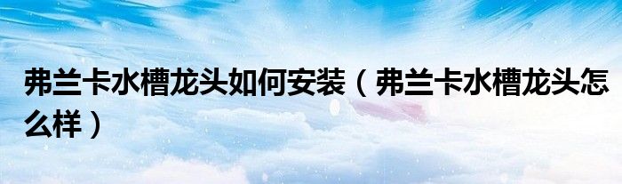 弗兰卡水槽龙头如何安装(弗兰卡水槽龙头怎么样)