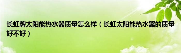 长虹牌太阳能热水器质量怎么样(长虹太阳能热水器的质量好不好)