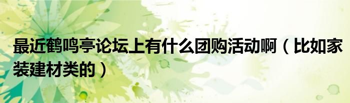 最近鹤鸣亭论坛上有什么团购活动啊(比如家装建材类的)