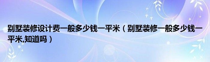 别墅装修设计费一般多少钱一平米(别墅装修一般多少钱一平米,知道吗)