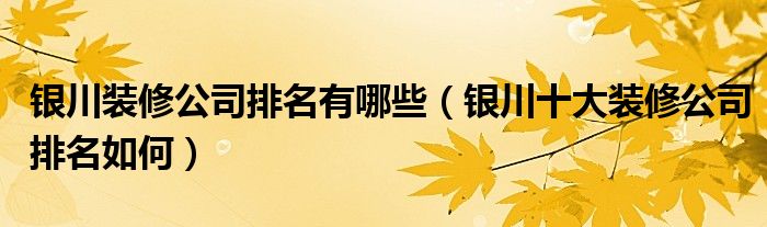 导读 大家好,精选小编来为大家解答以上的问题。银川装修公司排名有哪些,银川十大装修公司排名如何很多人还不知道,现在让我们一起来看看吧!1