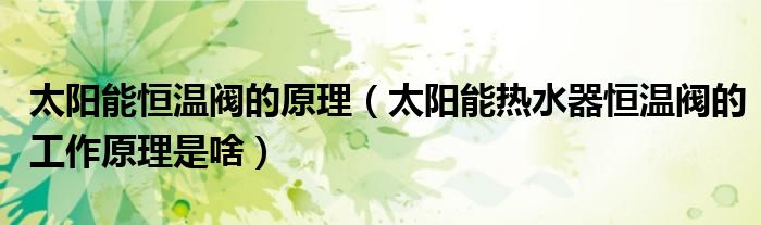 太阳能恒温阀的原理(太阳能热水器恒温阀的工作原理是啥)